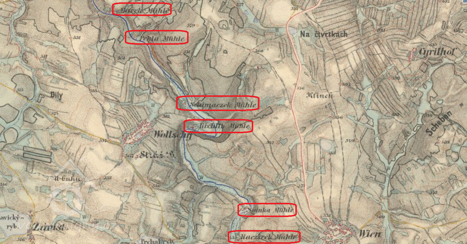 Na poč. války provedena rajoinizace, k mlýnu přiděleny Velké Meziříčí, Olší, Vídeň 1/2, Dobrá Voda, Mostiště 1/2, Závist, Lavičky. Bory oboje, Martinice, Kozlov, část Křižanova. Obchodní mletí pro pekaře z okolí.