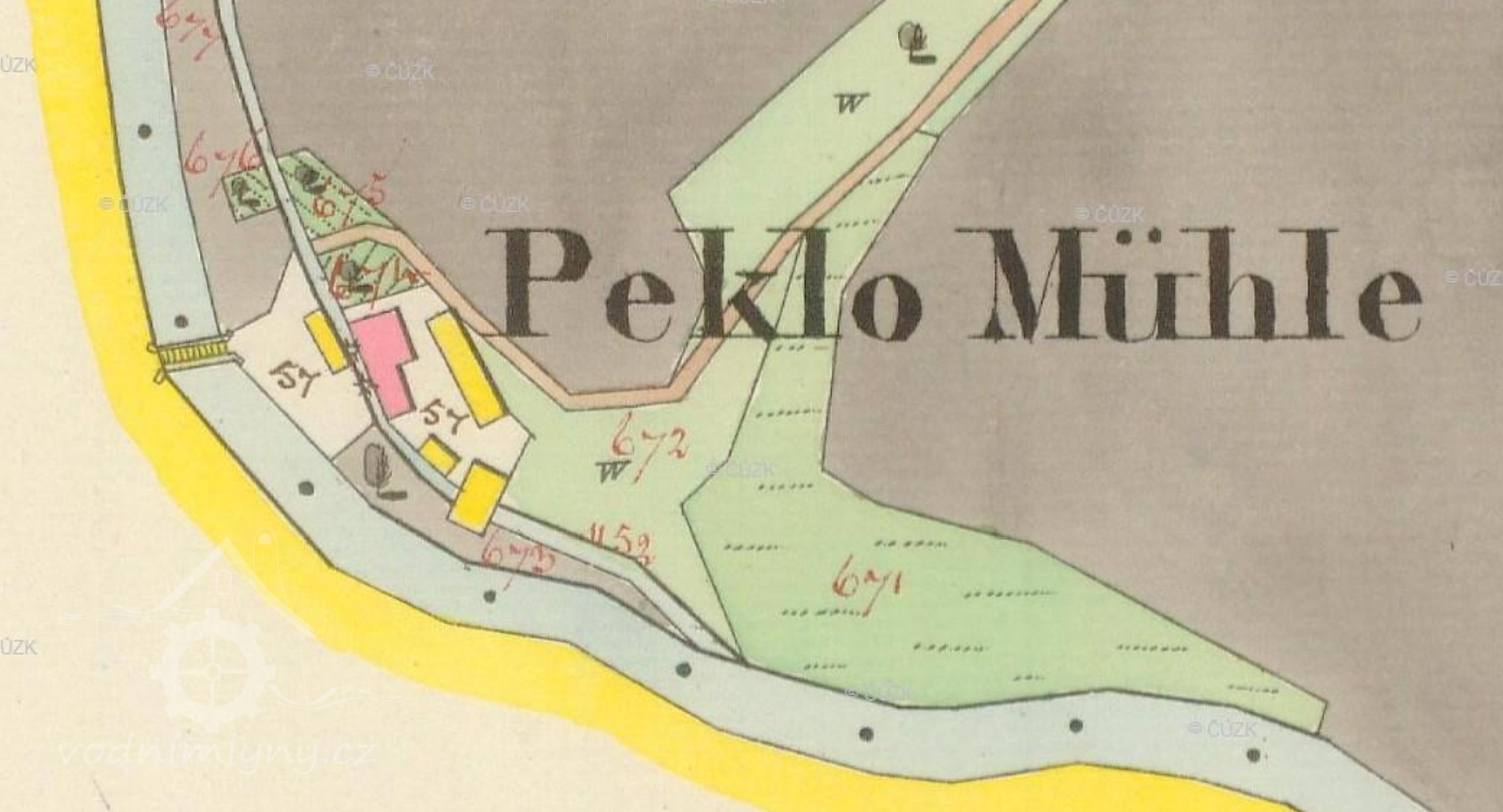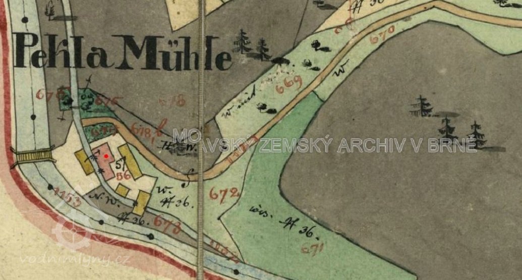 1695 urbář velkomeziříčský: Pekelský mlejn jest pustý, mělo sice podle předešlého urbáře od téhož úroku přicházeti k sv. Jiří 3 zl. 50 kr. a k sv. Václavu taky 3 zl. 50 kr., jest pak ale 9. decembris 1692 celý ten grunt Markovi mlynáři a jeho synu Tomášovi Markovi, jak dlouho živi budou, dovoleno užívati a s polovičního tuto vystaveného ouroku, tudíž 1 zl. 55 kr. a 1 zl. 55 kr.