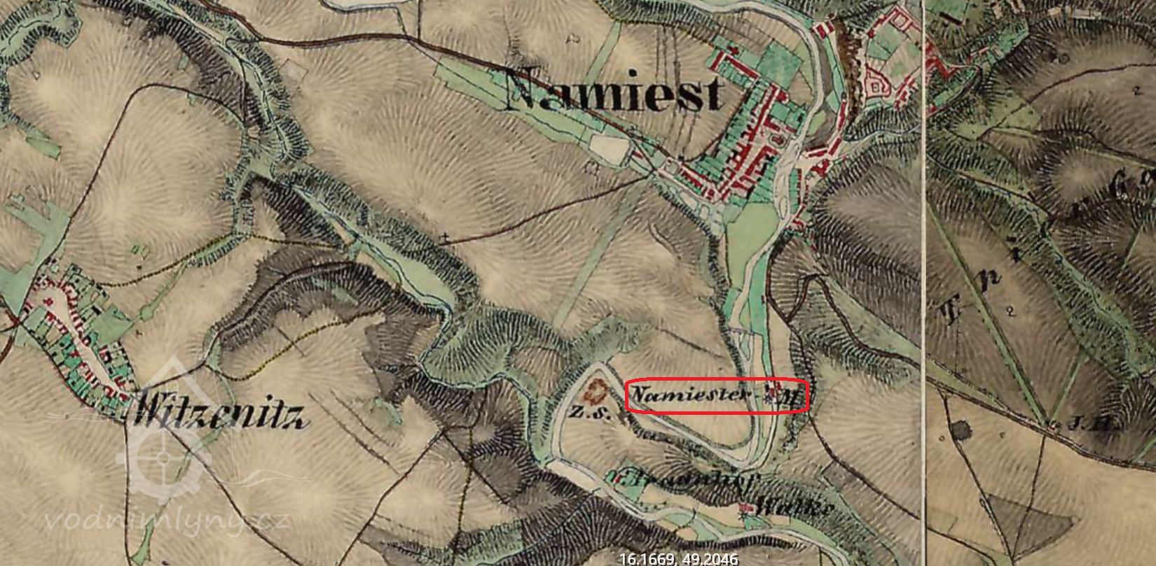 1821 v exekuční dražbě koupila mlýn náměšťská vrchnost za 500 zl. pro potřebu továrny na jemná sukna.