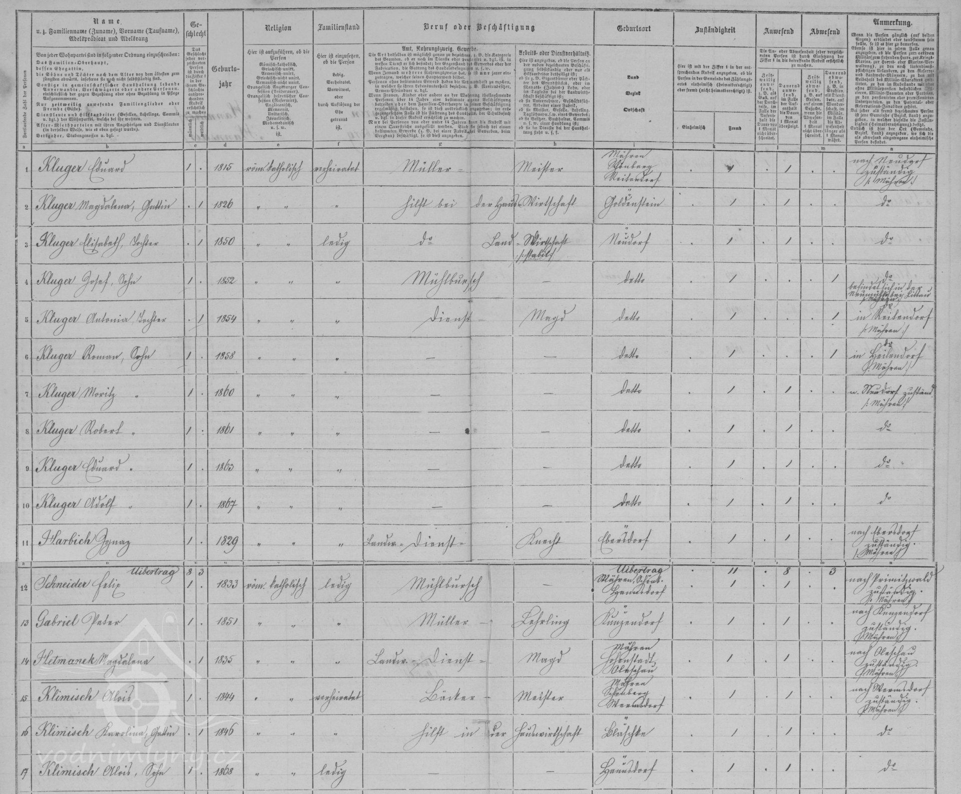 V roce 1880 mlýn vlastní Magdalena Kluger, nar. 1823.
