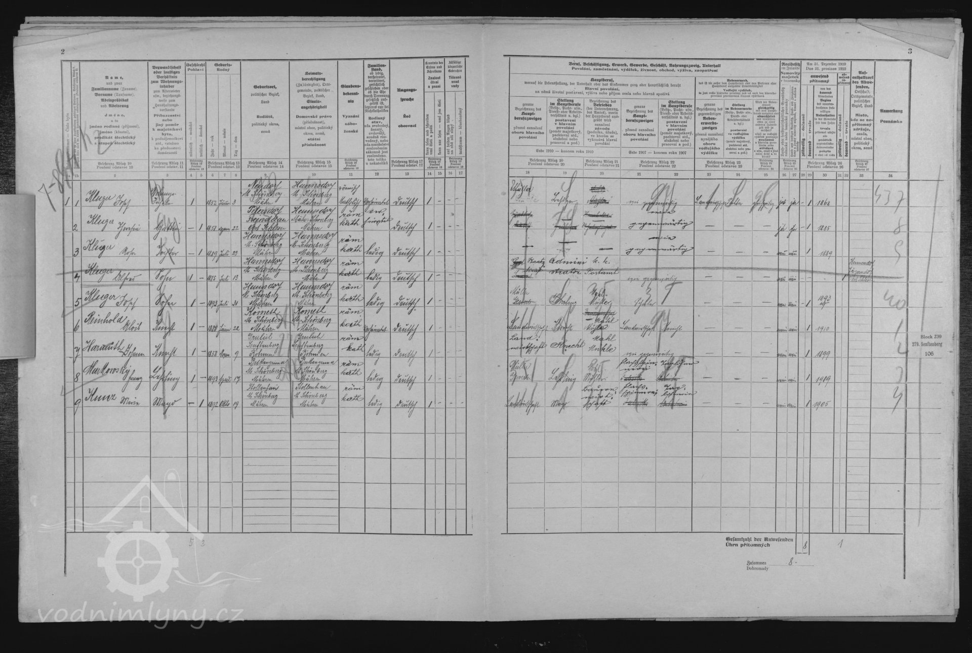 V roce 1900 mlýn vlastní Jozef Kluger, nar. 1852, s ním ve mlýně pracuje, mimo jiné, mlynář Jozef Weiser.