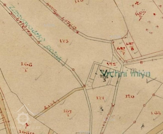 Vodní mlýn stával za Žarošicemi pod Silničnou, zde byl posledním majitelem mlynář Macháň, před ním u Žandovských. Tento mlýn v r. 1925 vyhořel a jako vodní byl zrušen. Pak byl přebudován na pohon plynovým motorem.