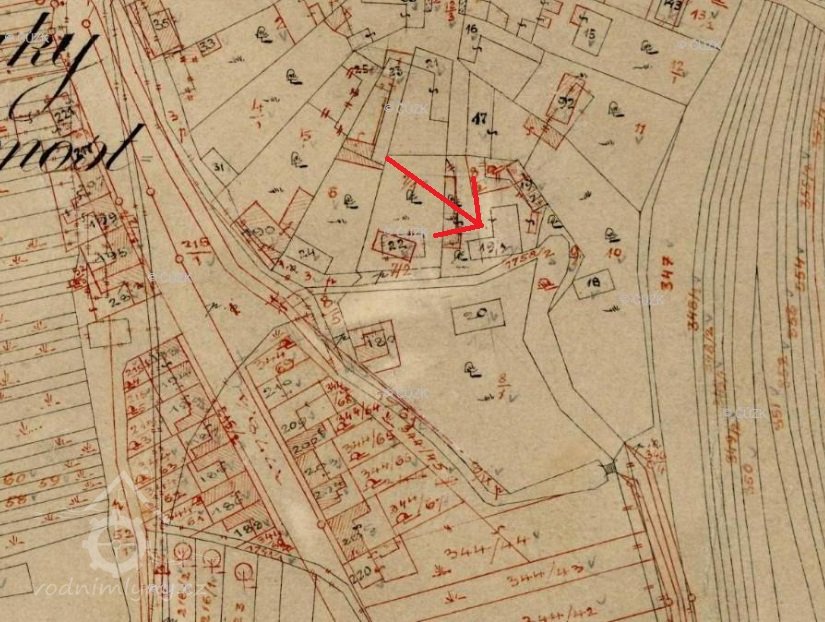 1921 Antonín Tesařík (nar. Bučovice, mlynář a stavitel mlýnů, v obci od 1908) [MZA – sčítání lidu 1857 - 1921 (Křižanovice 38)+matriky farnosti Křižanovice]