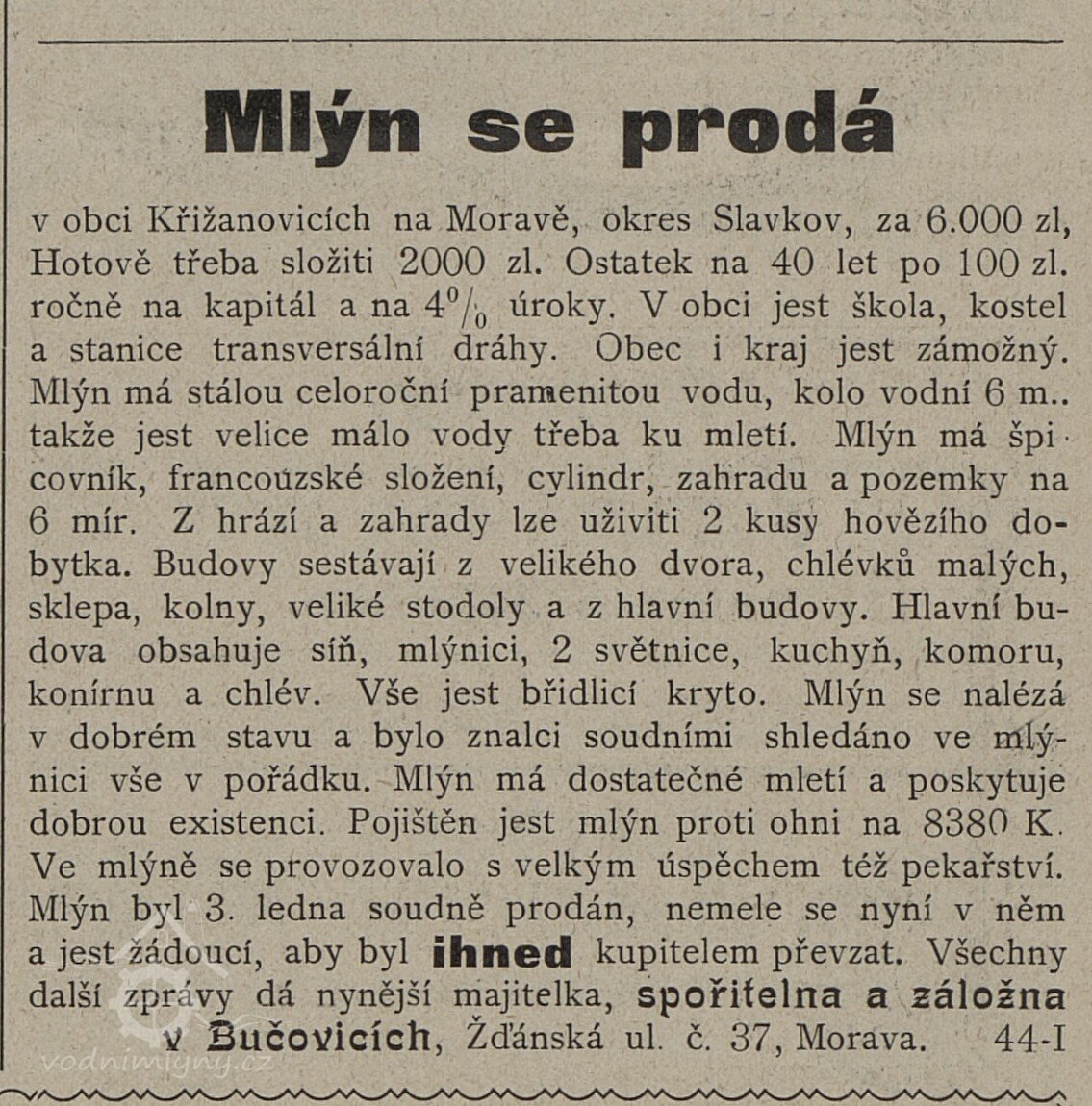 Je doložena už ve 14. století existence dvou vodních mlýnů. [Historie obce Křižanovice]