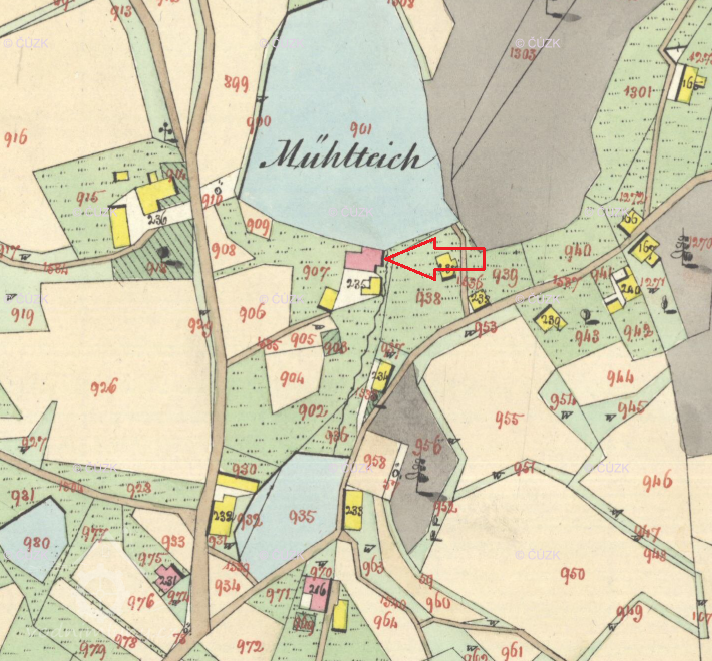 Anton Heer je uváděn jako majitel čp. 20 včetně rybníka nad mlýnem na indikační skice z roku 1843.