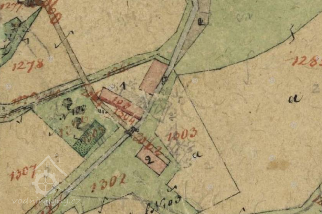 papírna u mlýna přestavěna na pilu, později s parním pohonem