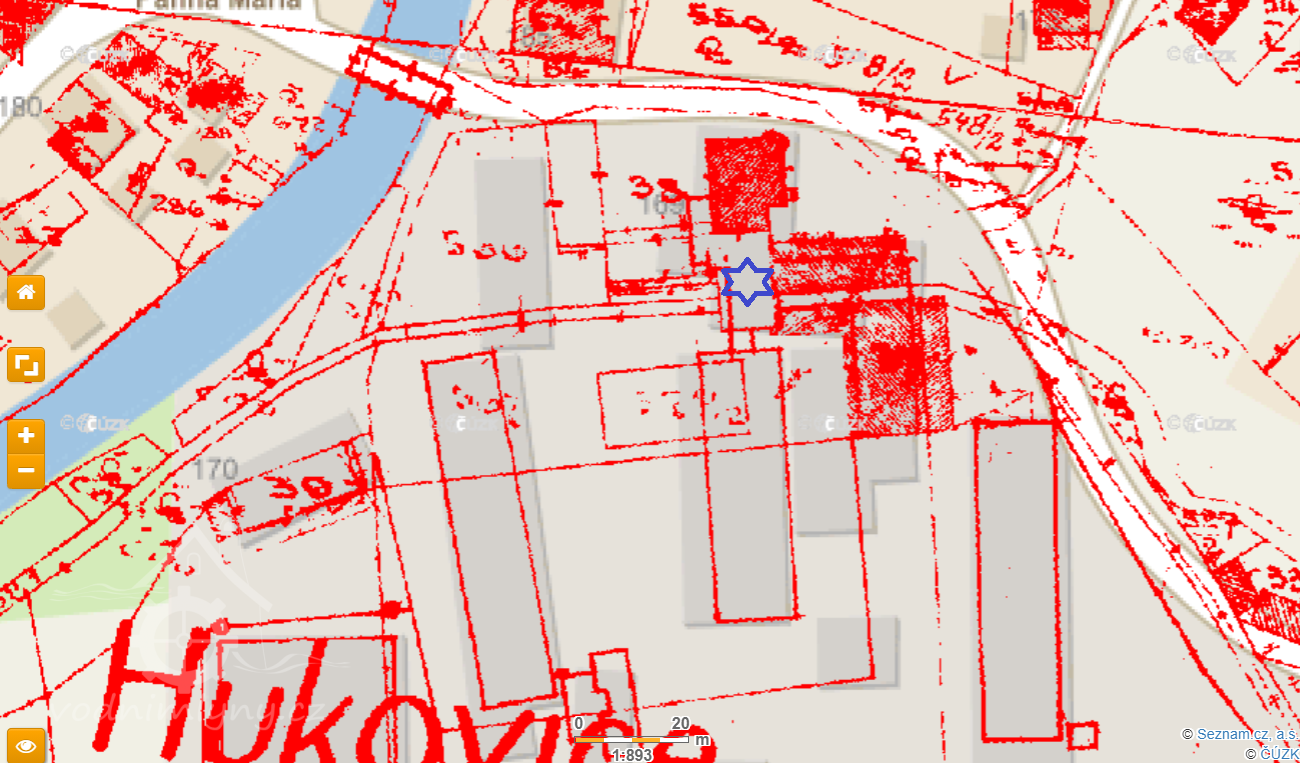 100 m západně od kostela P.Marie v Hukovicích