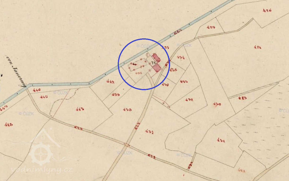 1871 na katastrální mapě evidenční v místě zakresleny objekty, není však jasné, zda se jedná o mlýn
