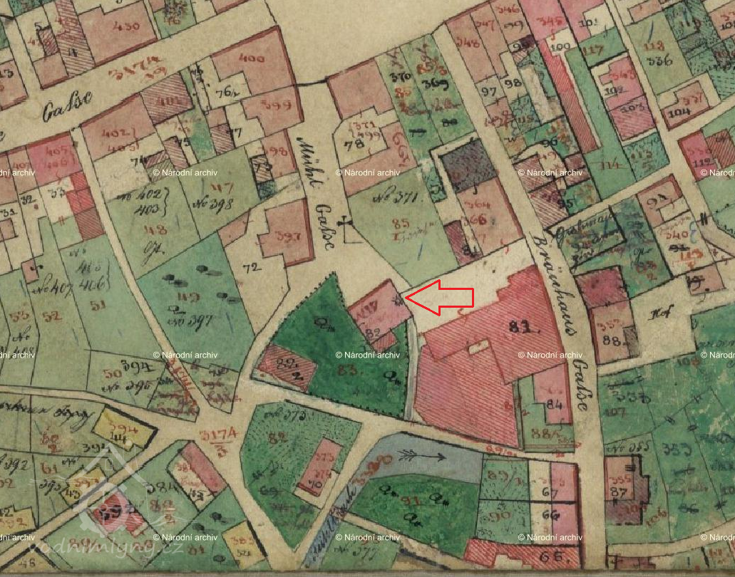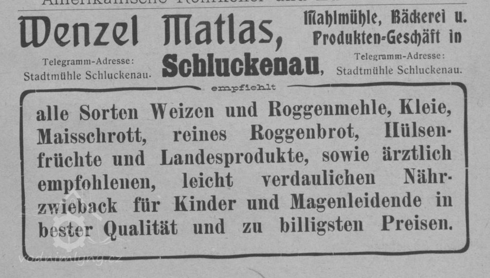V letech 1676 – 1678 soupis poddaných zmiňuje ve Stadtmühle mlynáře Hannsse Fabicha s manželkou Elisabeth a dětmi Zachariasem, Hannssem Georgem, Elisabeth a Mathesem.