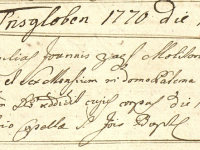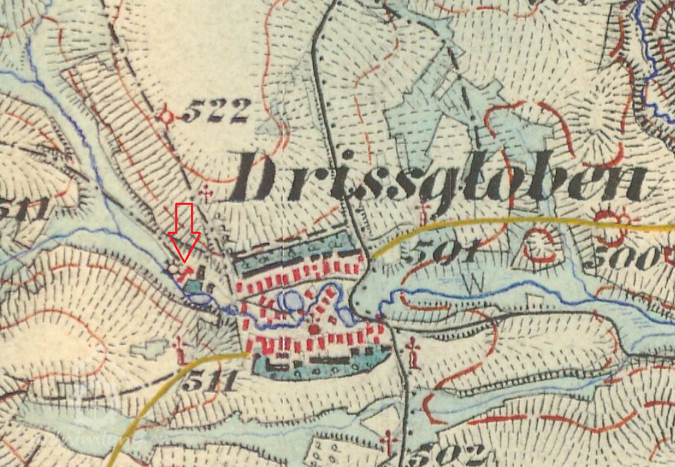 Sčítání obyvatel v roce 1869 zde zaznamenalo mlynáře Antona Hüttla (narozen 1843) s manželkou Theresií (1842), rozenou Brenner, původem ze Stráže, a se synem Josefem (1862). Ve mlýně sloužila děvečka Marie Wilschková, v hospodářství mlynář choval 2 krávy.