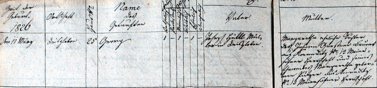 Sčítání lidu v roce 1869 zde zastihlo mlynáře Georga Hüttla (narozen 1826), jeho manželku Marii (1823) a jejich 4 děti Josefa (1849), Marii (1852), Johanna (1854) a Wenzla (1856). Mlynářskému řemeslu se u otce učil druhorozený syn Johann.