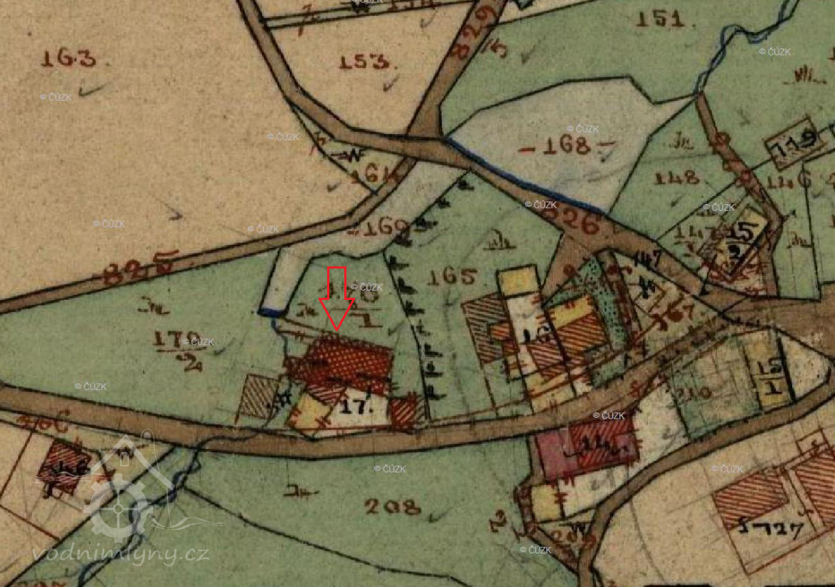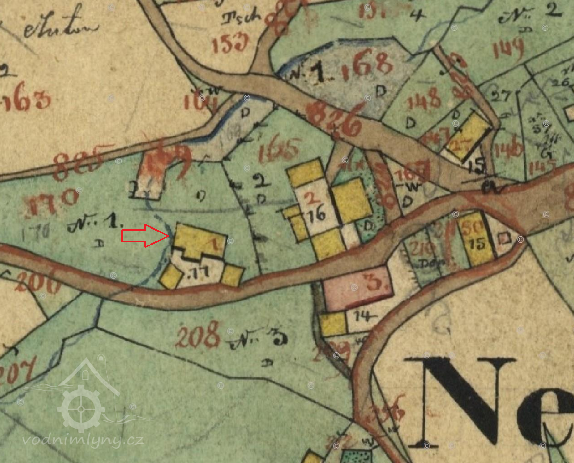 V roce 1876 byl u mlýna zasazen vodní cejch s iniciálami majitele Ludwiga Czerneho, který byl však uveden jen jako hospodář, nikoli jako mlynář. Bydlel zde s ženou Margarethou, rozenou Stich, 2 dětmi a matkou. V nájmu zde 2 členové finanční stráže a jejich kuchařka.