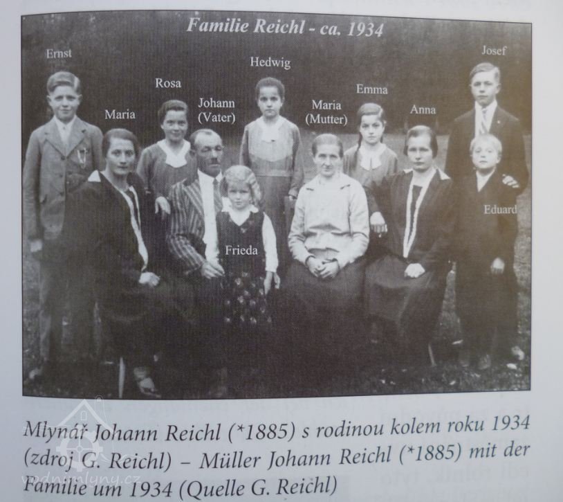 Manželům Josefu a Marii Reichlovým se na mlýně narodilo celkem 13 dětí, mezi nimi i syn Johann (1885), který se stal dalším majitelem mlýna společně s manželkou Marií, rozenou Marethovou (1888).