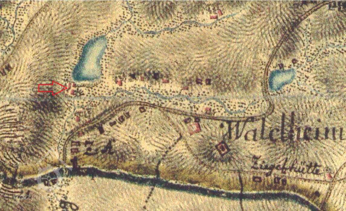 Nepatrné stopy budov těsně při hranici patří Waldheimskému Mlýnu, který byl nazýván také Novým nebo Huťským Mlýnem. Polohu mlýna dnes připomíná litinový kříž, vyzdvižený Johannem Steinerem r. 1841. Mlýnský rybník a rozpadlá propust, kterou dnes uzavřely svou hrází bobři (hráz je čerstvě vybagrována), jediní obyvatelé této opuštěné enklávy, jsou posledními připomínkami zaniklého osídlení.