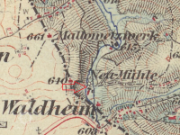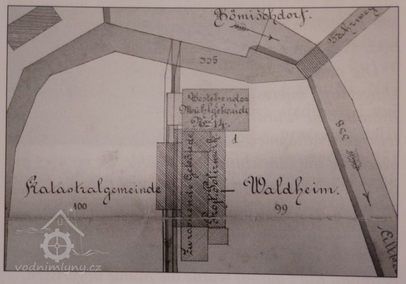 Součástí Waldheimu se stal také mlýn. Tereziánský katastr zde k roku 1757 zaznamenal mlynáře, který měl v nájmu panský mlýn s jedním kolem a pilu na nestálé vodě.