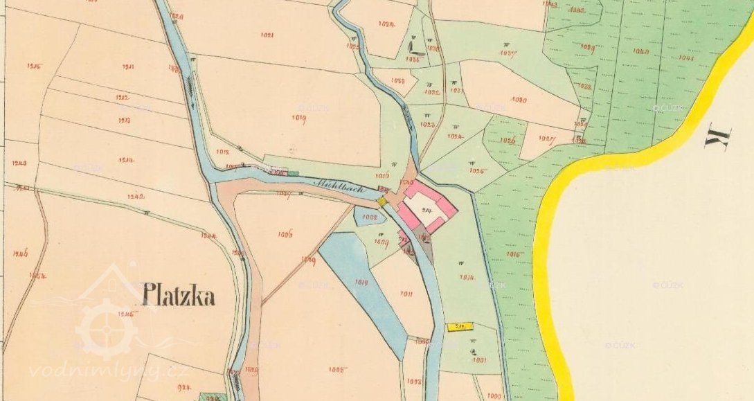 1538 Mikuláš Kydlín postavil mlýn ve své dědině Plotištích a to na na náhoně, kterým dovolil odváděti vodu na březhradský rybník.