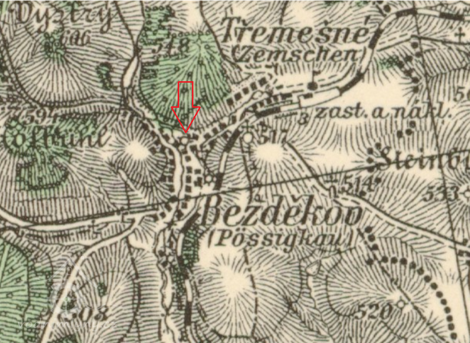 Tereziánský katastr zaznamenal k roku 1757 v obci Bezděkov 4 mlýny. Nejstarším mlýnem byl mlýn čp. 21 nazývaný Schlöglmühle.