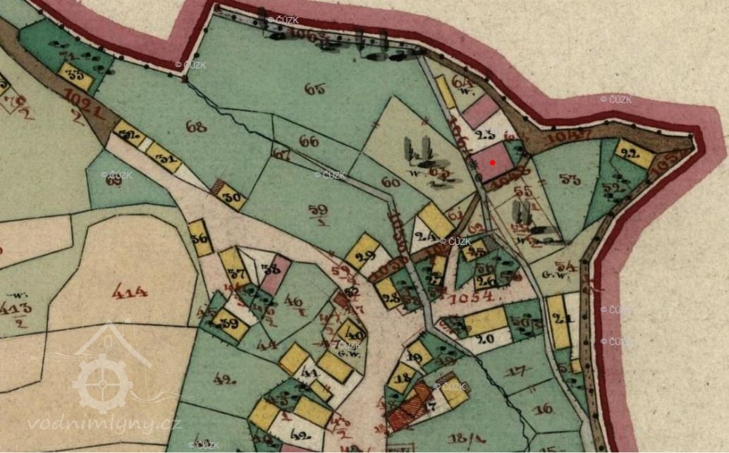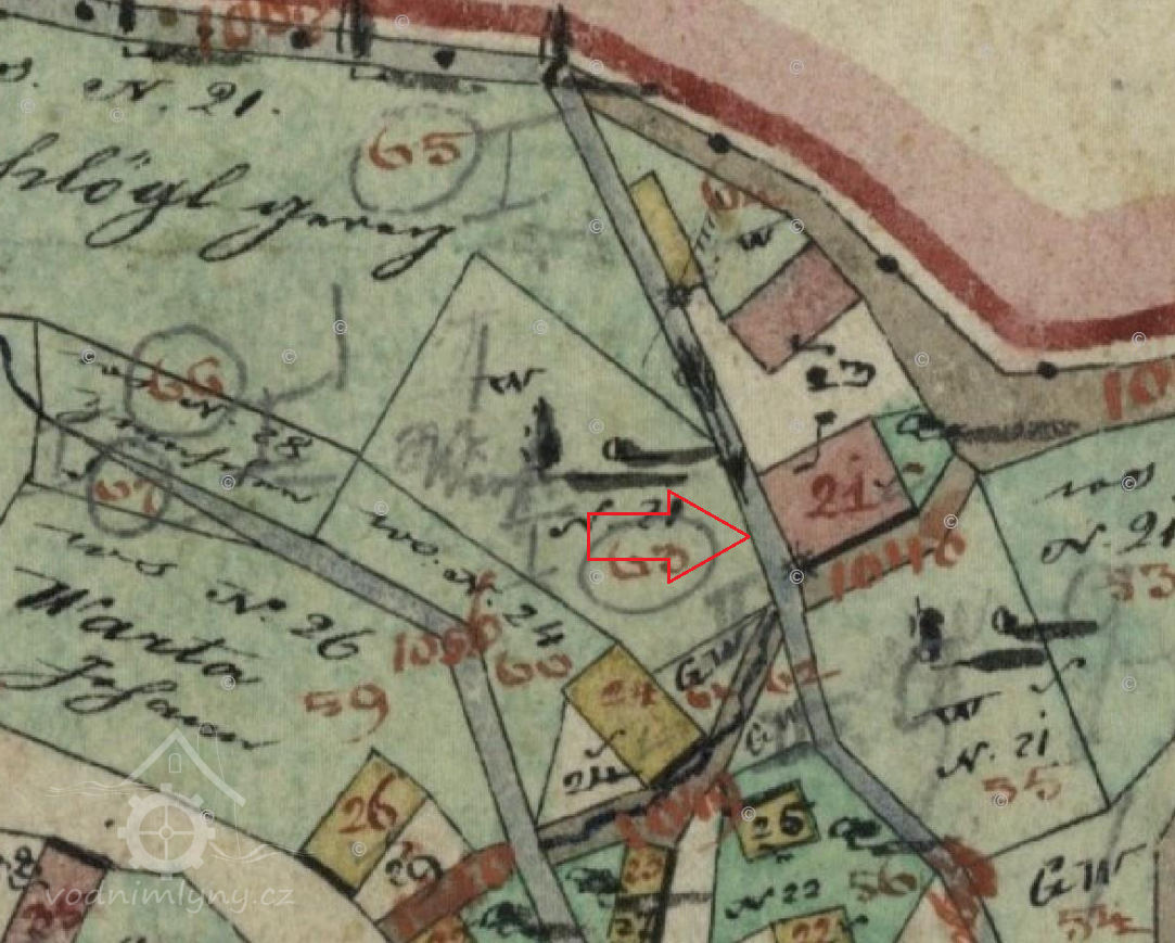 Na mapách stabilního katastru z roku 1838 je budova mlýna zakreslena jako zděná se dvěma vodními koly, jedno pohánělo mlýnské složení, druhé katr na řezání prken.