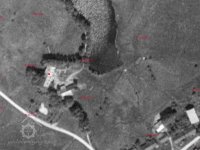 Na leteckém snímku z roku 1947 jsou budovy ještě v zachovalém stavu.