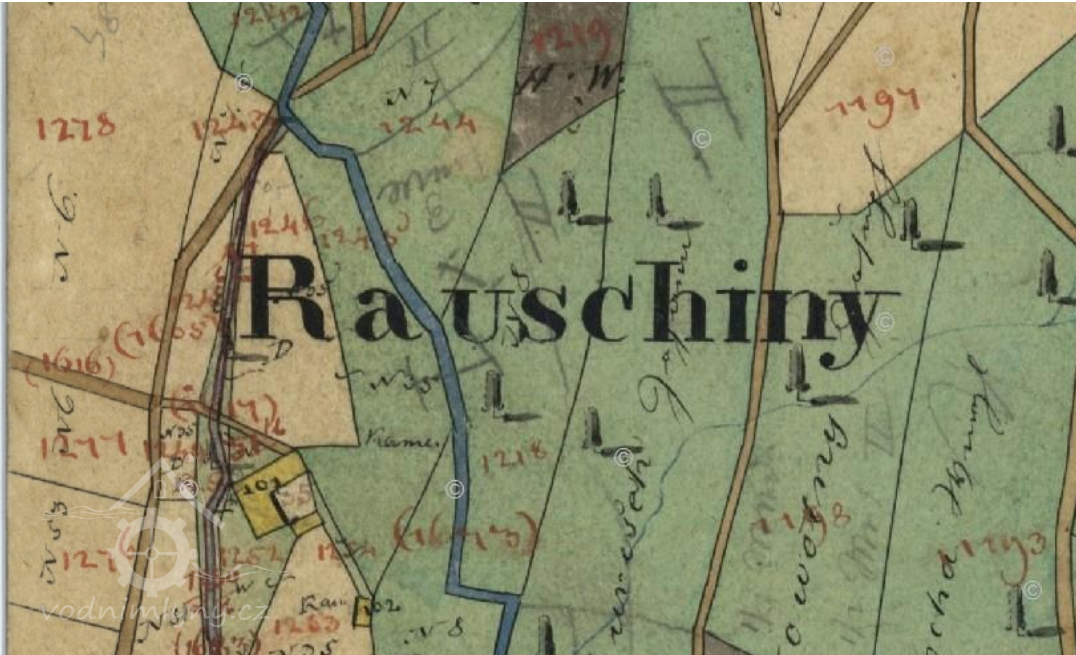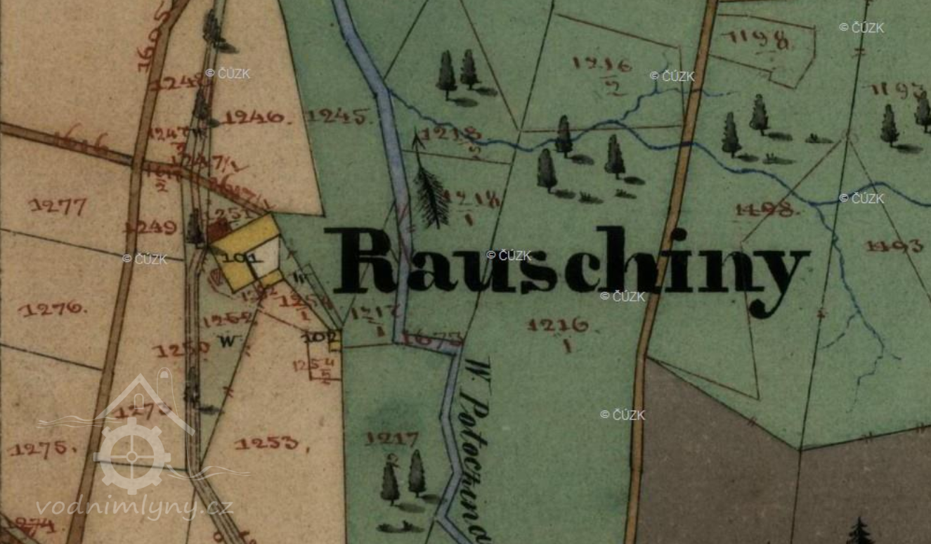 1837 Johann Gottfried Sommer: "Mlýn na místě dřívější kovárny na roury, která dodnes podržela své jméno Rohrschmiede"