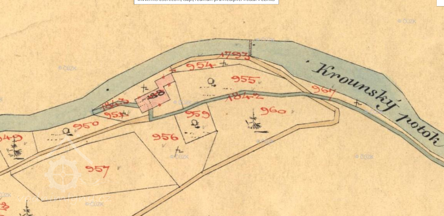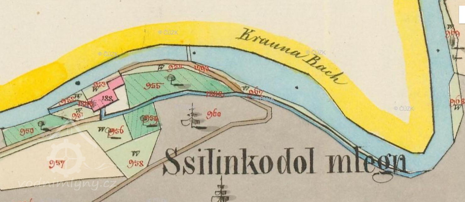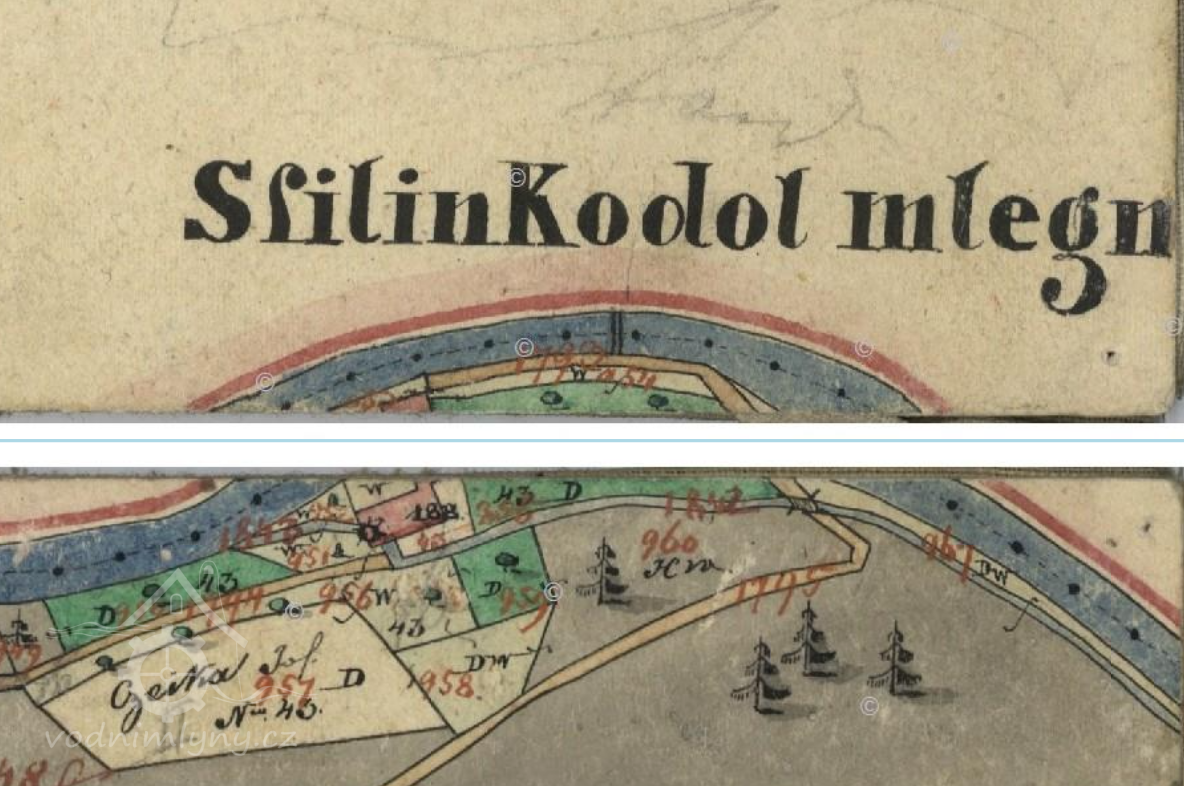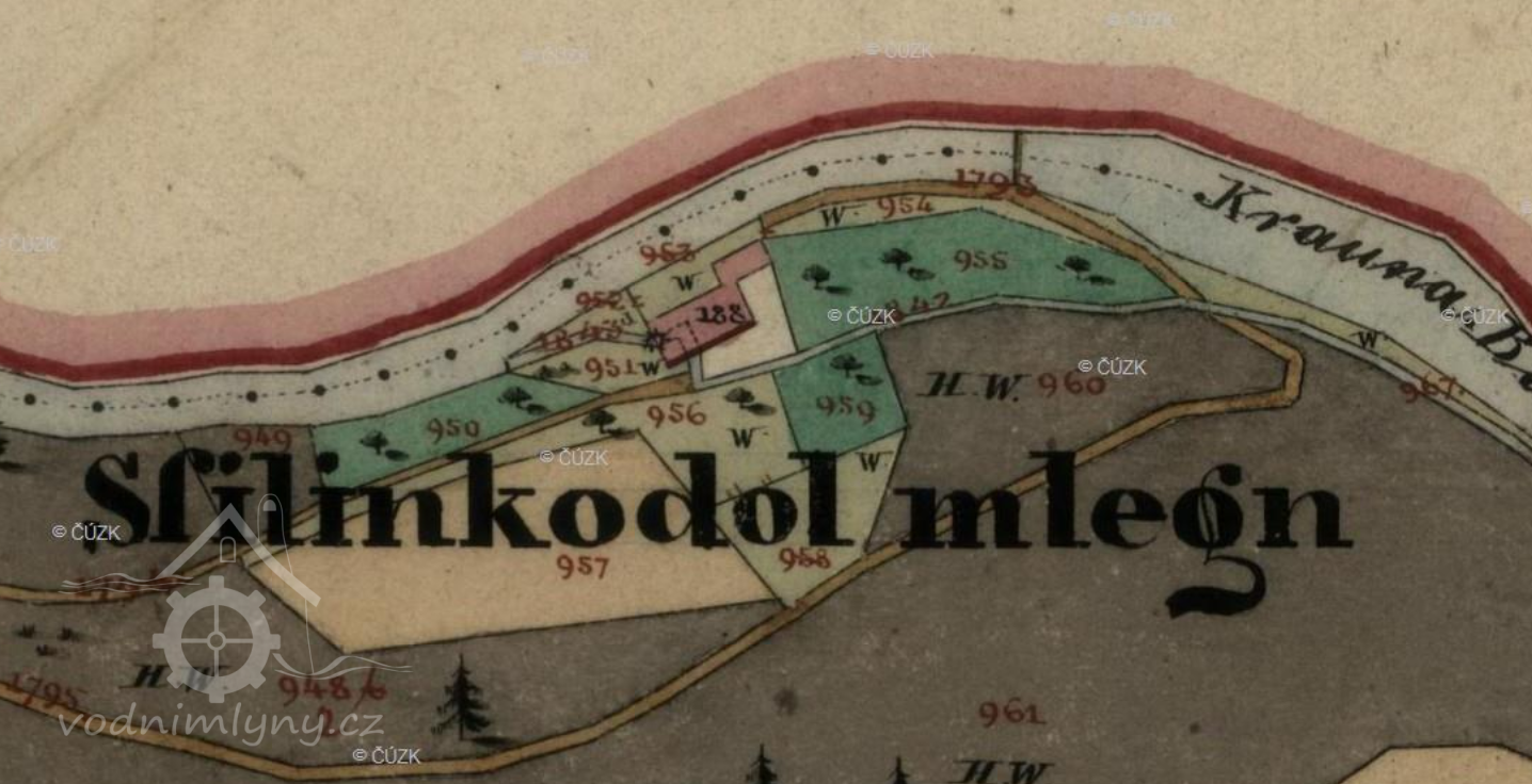 Mlýn v roce 1879 přestavěný na hájovnu, později zbořenou.