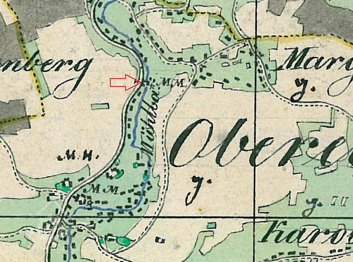 V polovině 19. století byla pod mlýnem na stejném náhonu dřevěná pila. Je zakreslena na mapách stabilního katastru jako menší dřevná stavba v severním sousedství mlýnské budovy.