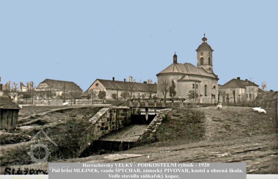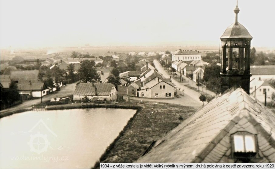 1917 – mlýn s vantroky pod Velkým rybníkem tak zchátral, že se zde přestalo i šrotovat. Komise obecní, podle zápisu řídícího učitele Mindla v průběhu války 7. listopadu 1917 odevzdala žádost o odprodej Velkého rybníka a mlýnku na vrchní ředitelství harrachovských statků ve Stěžerách a adresována: Jeho osvícenosti Vysoce urozenému pánu panu Ottovi hraběti z Harrachů ve Vídni: „Rybník ten žádného užitku nenese, spíše vydání. Kvůli bezpečnosti muselo býti kolem rybníka postaveno zábradlí, ježto již několik dětí se v něm utopilo. Je nutna oprava hrází východních. Z ohledů mravních, že v samém sousedství kostela děti celé nahé pobíhají a lomozí. Z ohledů zdravotních, že nánosem rybník se vyplňuje a voda hnije. Mlýn, kvůli němuž rybník byl vlastně zřízen, nachází se v stavu chatrném a i v pádu jeho opravení – vzhledem na jeho malé, prastaré zařízení - potřebám nynějším i budoucím v žádném pádu vyhověti nemůže a při zavedení elektrického pohonu v místě úplně zbytečný se jeví.“ Hrabě Harrach svolil k prodeji rybníka za 14000 válečných korun rakousko uherských, ale též ke stavbě nové školy!