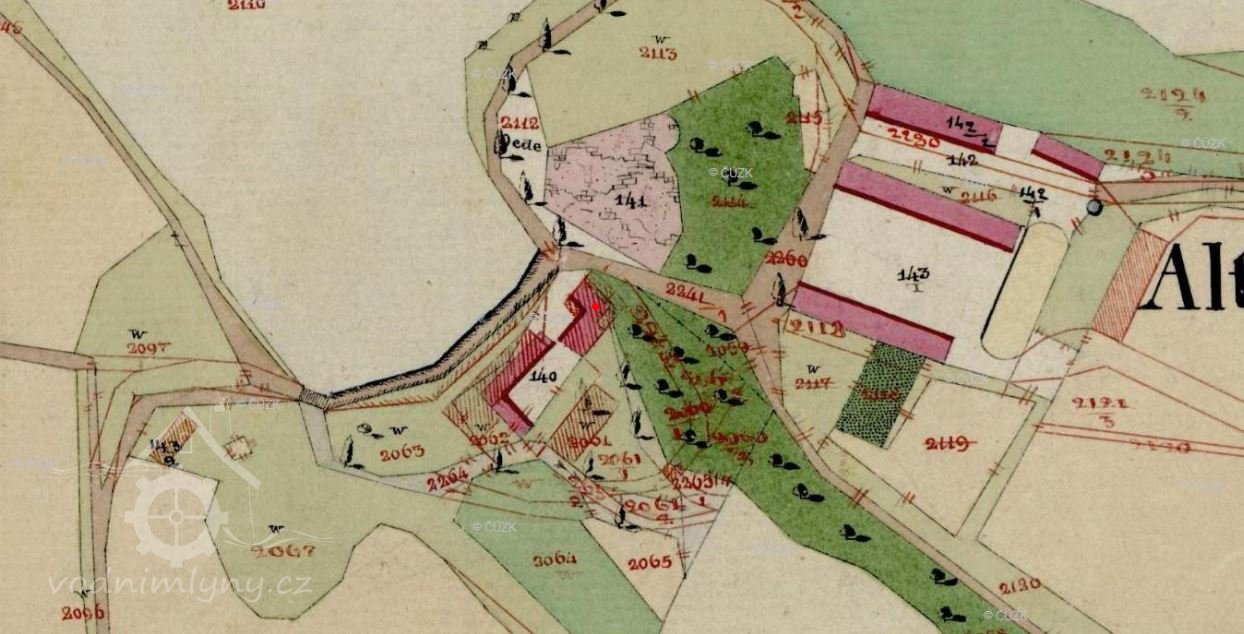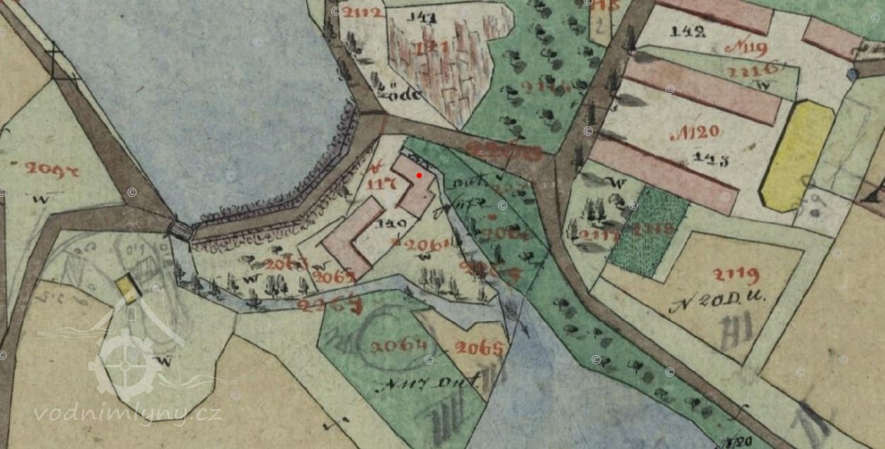 1557 mlýn a pila nad zámkem a rybník Podhradský, z kterého voda na mlýn jde