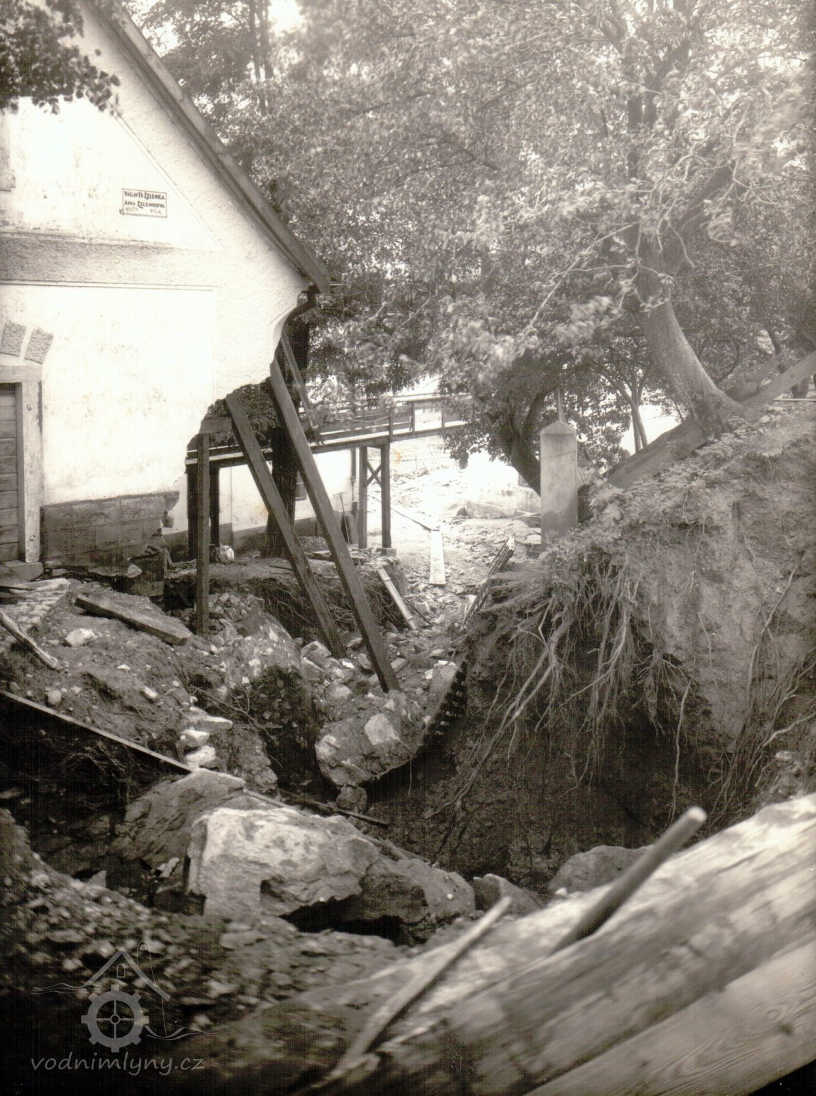 „Dne 26. srpna 1925 překvapila naši obec po dešti 1 ½ dne trvajícím povodeň, jaké není pamětníka... Nejhůře bylo na Starém Zámku. Tam včas stavidel nevytáhli a když brlení se ucpalo a voda se počala hrnouti přes hráz, ohromný tlak vody vytažení stavidel bránil. A voda valící se několika proudy přes hráz započala ničivé dílo. Dvůr i obydlí rázem zaplaveno, roh mlýnice podemlet tak, že se zřítil (voda vymlela tam jámu přes 2,5 m hlubokou), dvůr zanesen nánosem do výše 1 m. A jen to, že nadlidskému úsilí přispěchavších lidí podařilo se vypáčiti brlení i se stavidly a tak uvolniti proudům rozkaceného živlu cestu, zachránilo Zelenkův mlýn od úplného zdemolování..