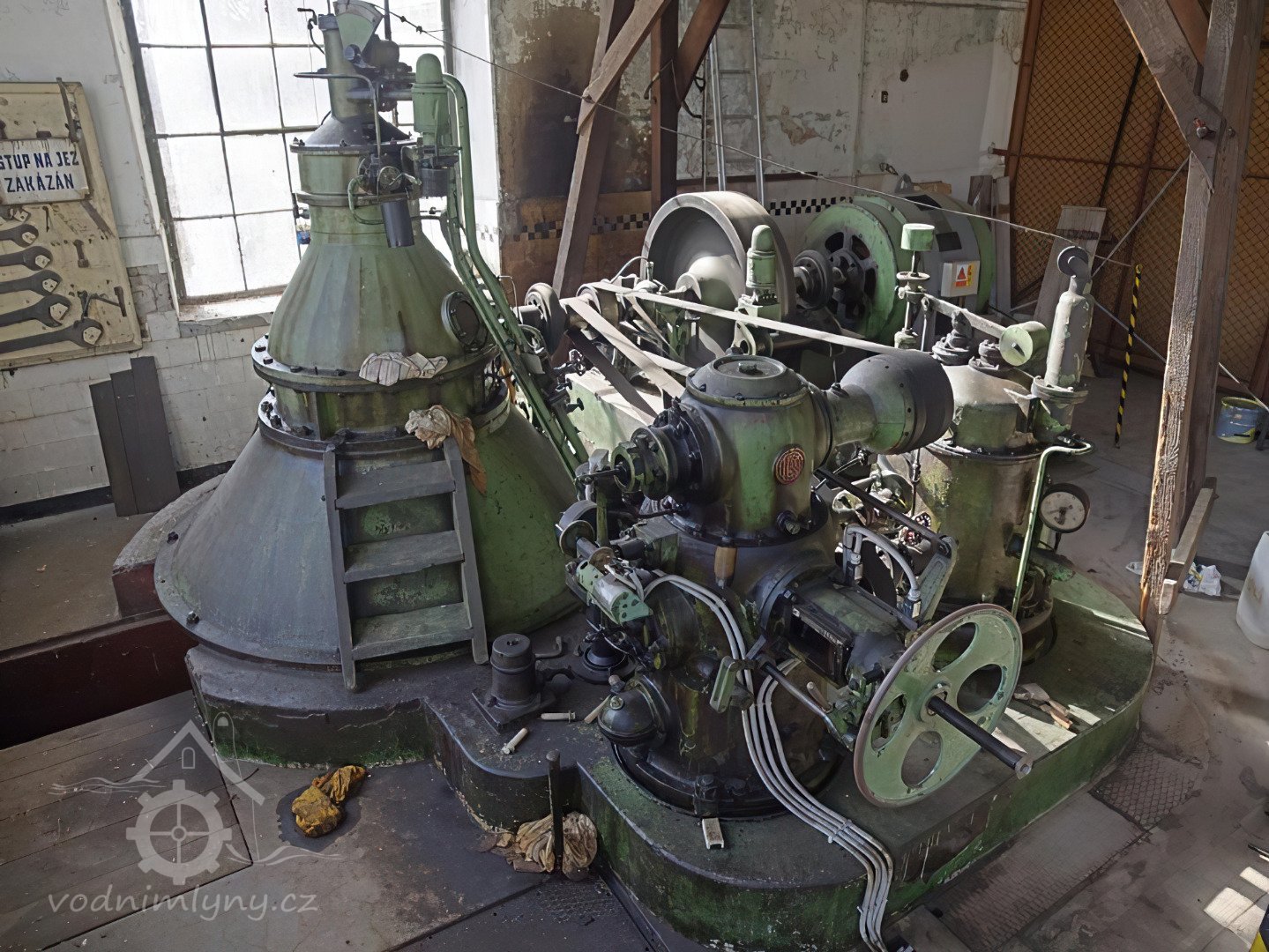 1930: 2 turbíny Francis, hltnost 3,42 m3/s, spád 1,745 m, výkon 59,7 HP