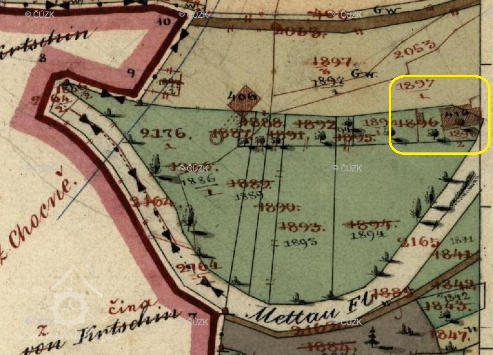 Roku 1876 vystavěl si zde tkadlec štruksu Josef Přibyl přízemní domek a v něm měl stroj na družení (cvernování) příze s pohonem vodním. Po půl roce stroj cvernovací odstranil a zařídil si zde mlýn o 1 složení, říkalo se zde „VE MLÝNKU“ V roce 1907 mlýn vyhořel a již nebyl obnoven. V roce 1909 bylo vloženo na mlýn právo vlastnické obce krčínské, která ve mlýně (který ovšem leží na katastru Nového Města n/M) zřídila elektrárnu.