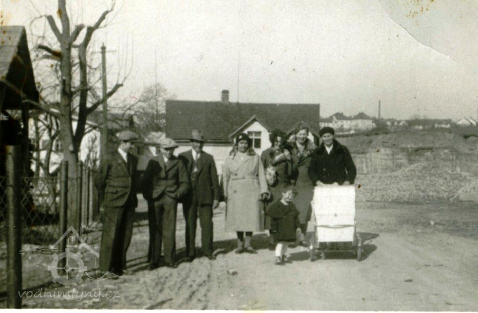 Roku 1876 vystavěl si tkadlec štruksu Josef Přibyl z Nového Města nad Metují domek přízemní u dráhy při řece Metuji „na Pražance“ (pozemek v katastru obce novoměstské) a postavil si v něm stroj na družení (cvernování) příze s pohonem vodním. Místo řemenů používal popry (tkané pásy). Jez čili splav postavil si sám vlastní rukou. Ale po půl roce stroj cvernovací odstranil a zařídil si zde mlýn o 1 složení, říkalo se zde „ve mlýnku“. Josef Přibyl zakoupil roku 1878 obecní pozemek na zřízení vodní strouhy u mlýna na Pražance a zaplatil za něj 40 Kr. za 1 čtvereční sáh. Jelikož se zadlužil, byl nucen mlýn tento číslo popisné 129 b prodati a dne 1.října roku 1879 koupili ho manželé Jan a Anna Holečkovi z Černilova. Ti postupem času mlýn rozšiřovali, pecnářstvím a výrobou hnětacích strojů na těsto (díže) se zabývali a při tom se finančně zakrváceli, takže dne 6. dubna roku 1903 uvalen na jmění Jana Holečka konkurs.