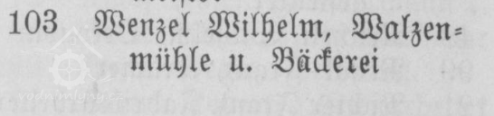 V roce 1904 v Adresáři obce Desná je dům čp. 103 zapsán jako válcový mlýn a pekárna, majitel a provozovatel Wilhelm Wenzel.