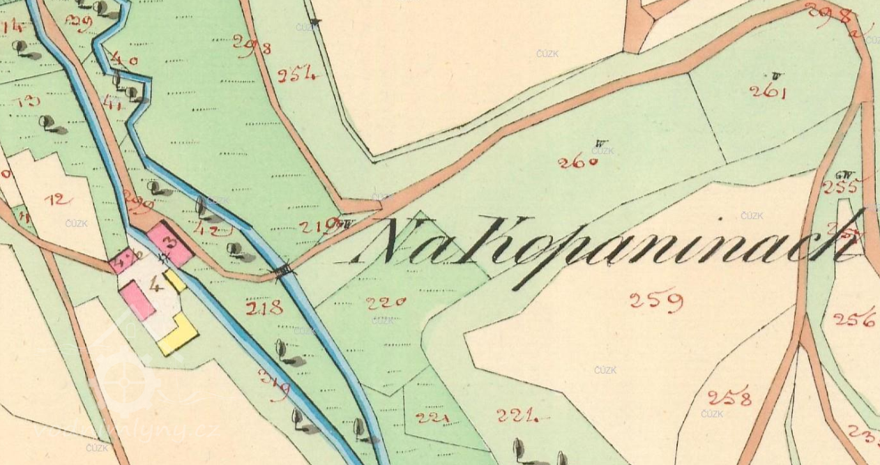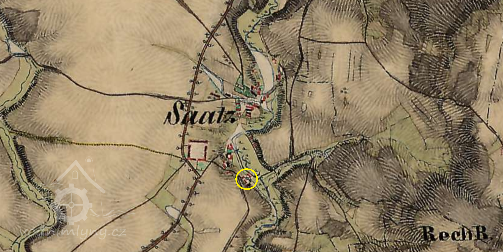 Větší mlýn v jižní části obce, údajně založený před rokem 1843 (ale je již na mapě I. voj. mapování).