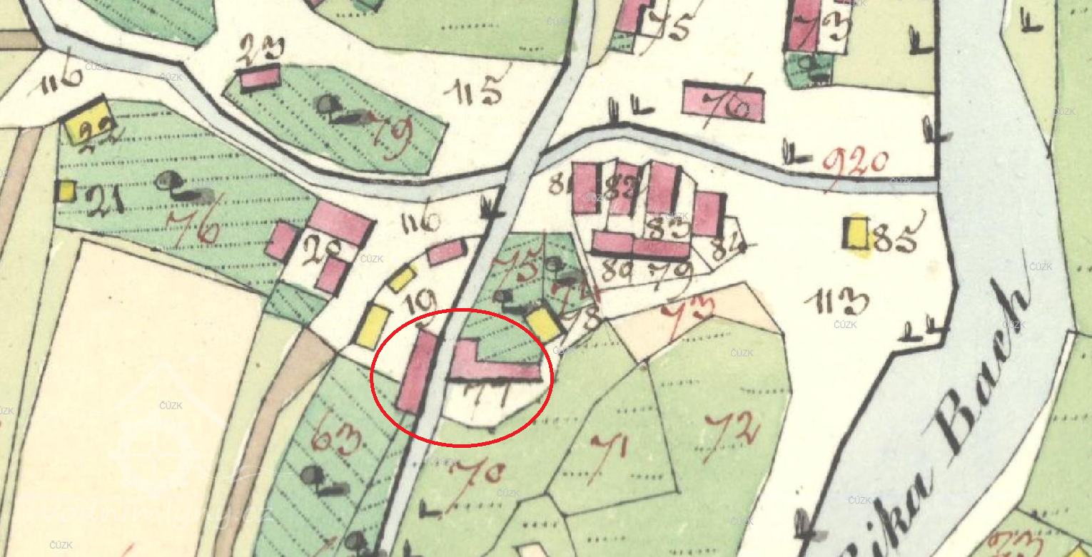 Popis1930: 1 kolo na svrchní vodu, hltnost 0,12 m3/s, spád 2,8 m, výkon 3 HP