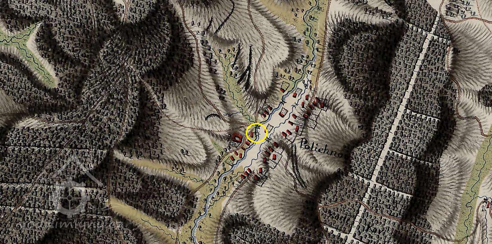 Mlýn stojí uprostřed obce.