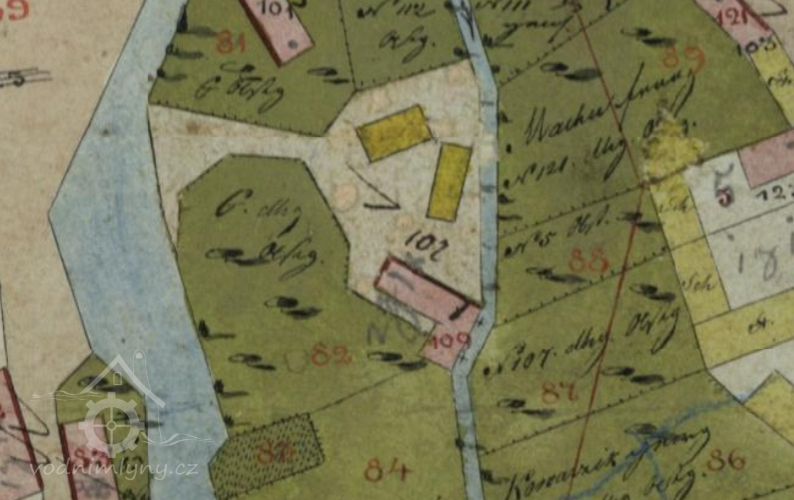 Popis1930: 1 kolo na svrchní vodu, hltnost 0,148 m3/s, spád 4,05 m, výkon 5 HP