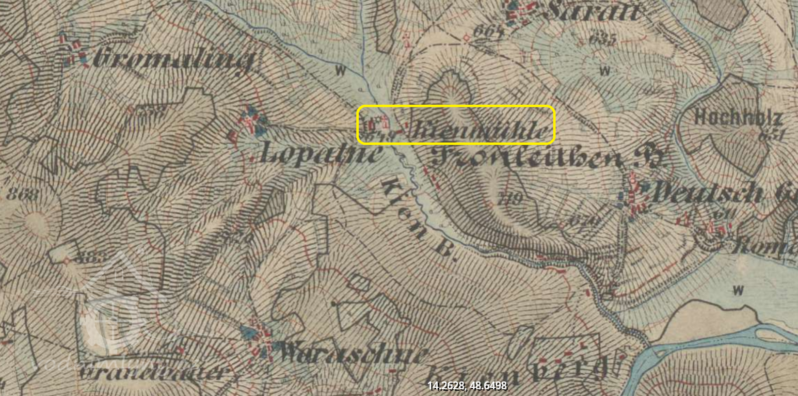 Podle zdejšího amatérského historika Fr. Schussera (dnes již nežije, takže nelze zdroj jeho infomací ověřit) se zde mělo zpracovávat obilí až do roku 1950.