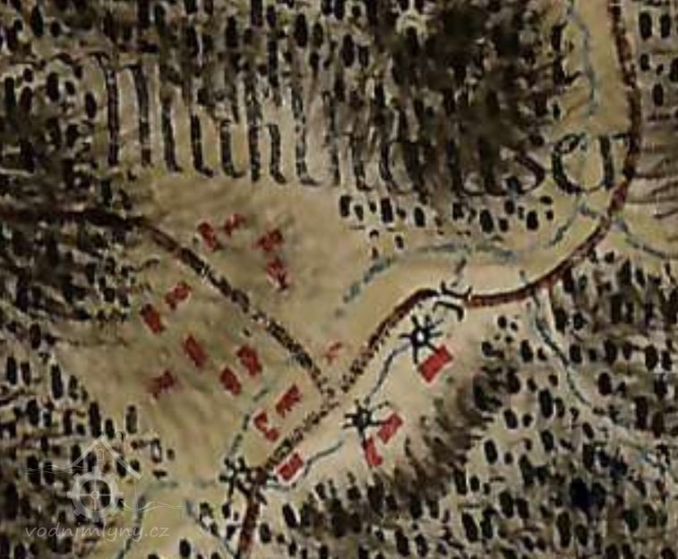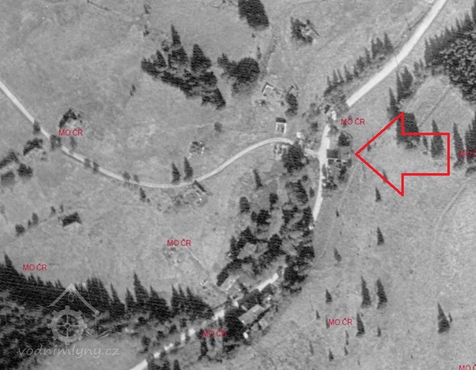Uváděn na 1. voj. mapování, v Seznamu z r. 1930 již uveden není. Zbořen po odsunu německého obyvatelstva po r. 1946. Na místě dnes patrné zbytky mostku i náhonu.