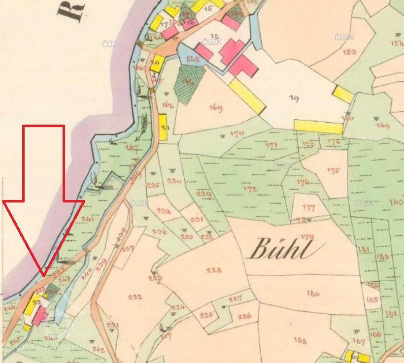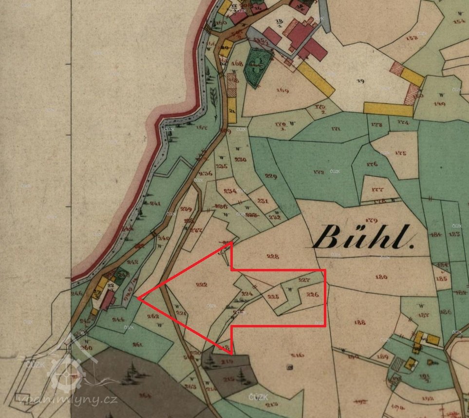 Mlýn vyobrazen již na 1. voj. mapování; v seznamu 1930 uveden jako mlýn, dnes objekt částečně vybydlen.