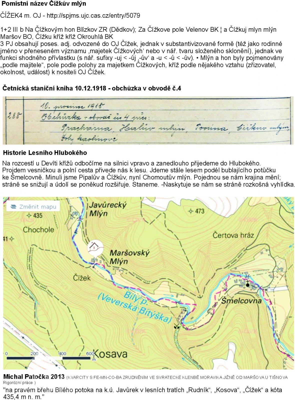 NázevK mlýnům na potoce Bítýška a Bílém potoce
