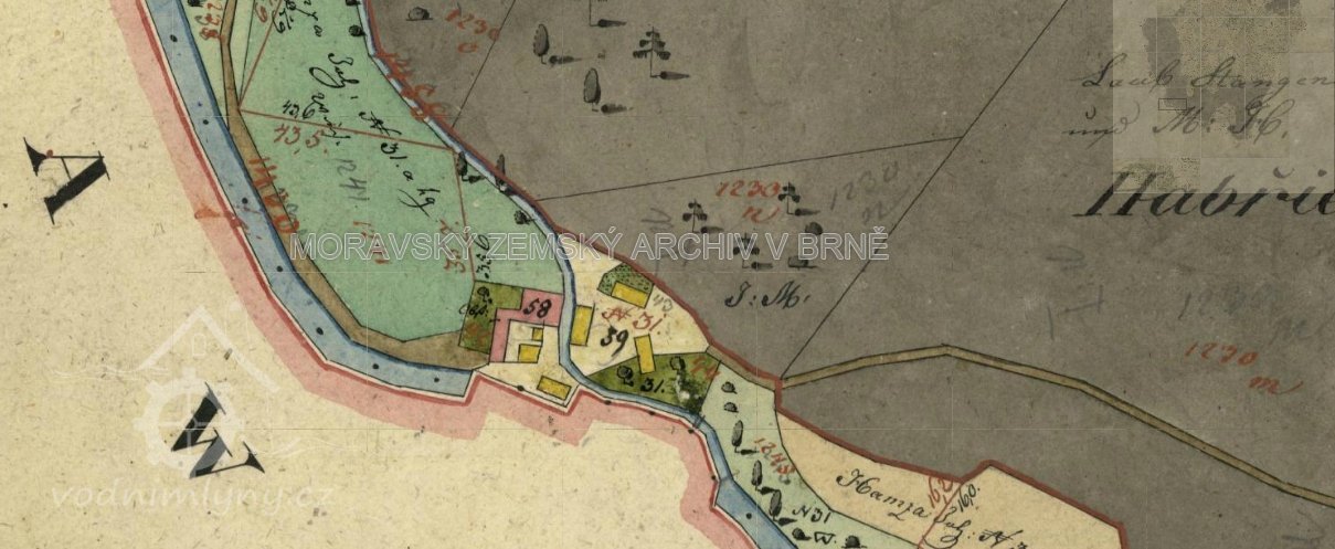 PopisV roce 1930 měl mlýn 2 kola na vrchní vodu, hltnost 0,1/0,081 m3/s, spád 4,70/4,70 m, výkon 4,07/3,30 HP.