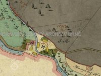 Mlýn v hlubokém údolí je vidět jen z cesty mezi stromy. Nelze s určitostí popsat uvedené parametry.