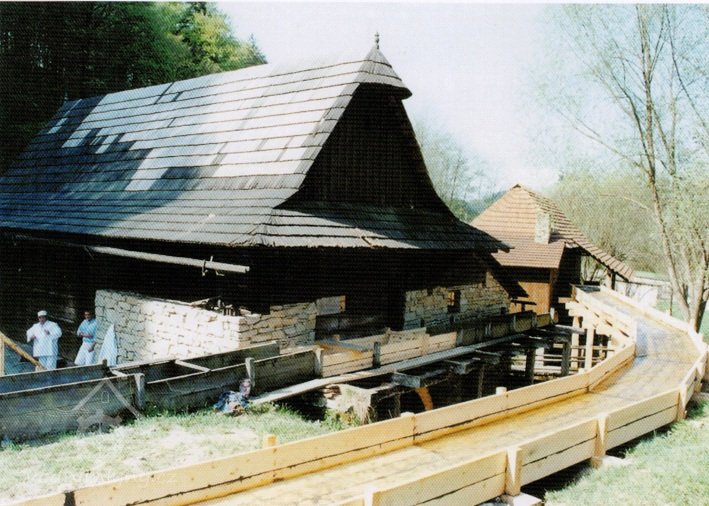 Na místě mlýna nově zřízena stylová valašská dřevěnice.