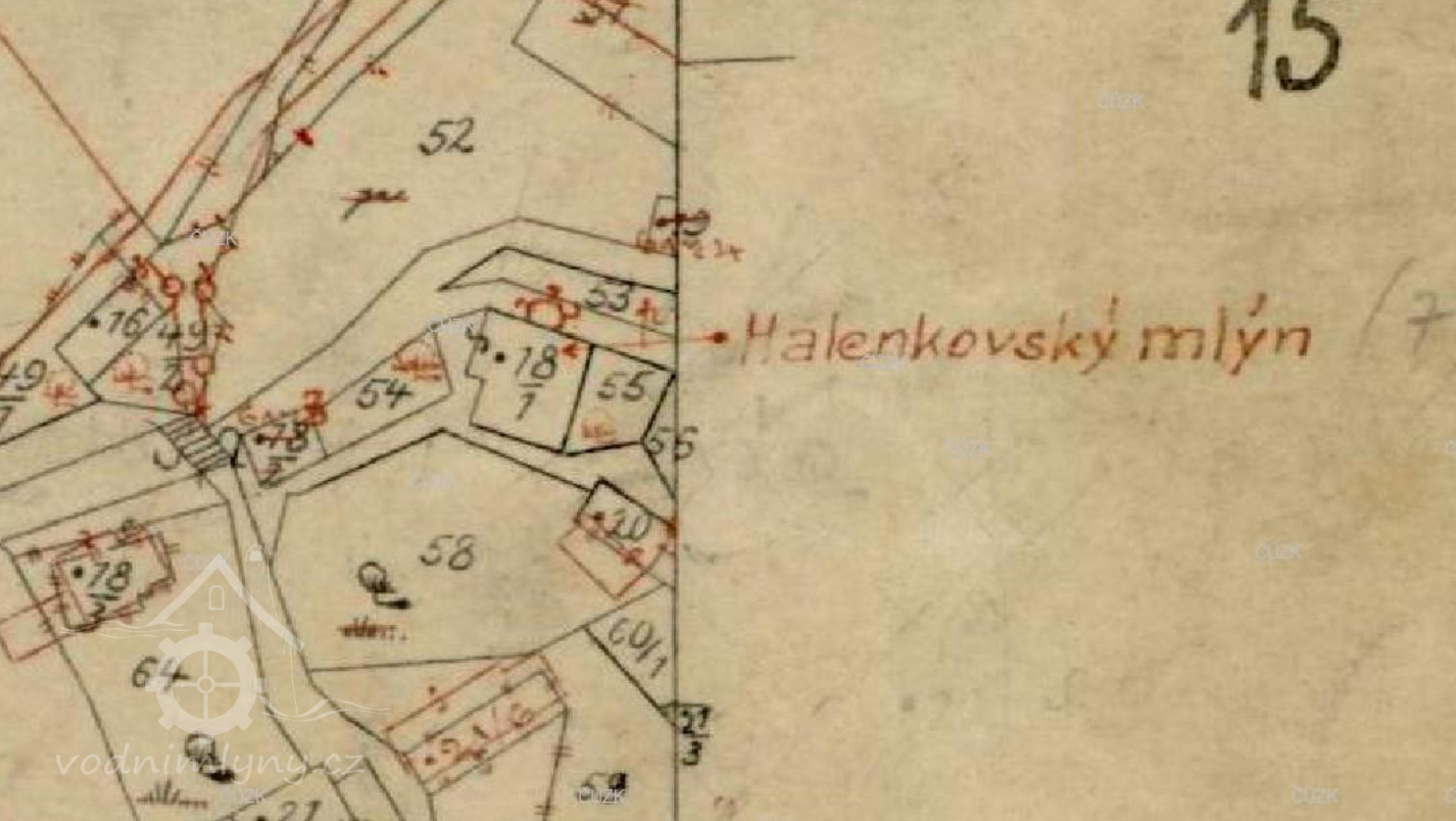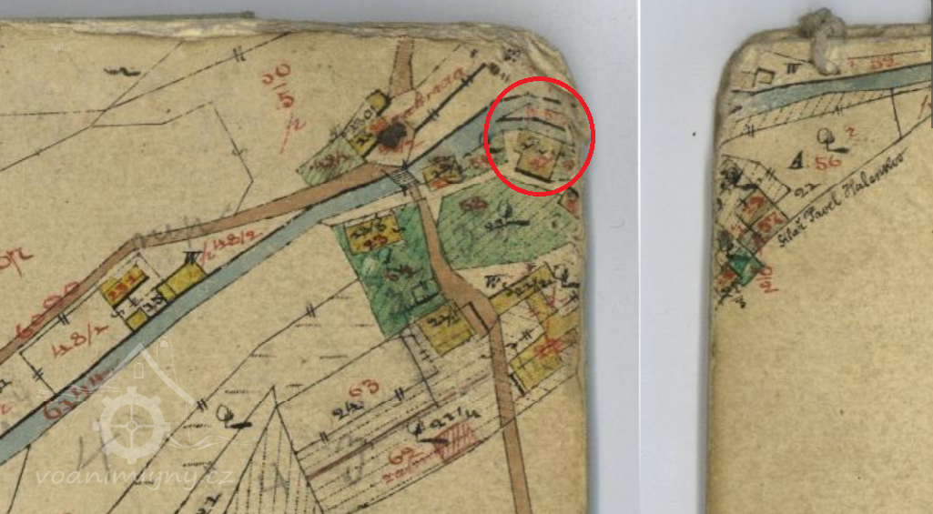 Popis1930: 1 kolo na svrchní vodu, hltnost 0,418 m3/s, spád 3,3 m, výkon 12 HP