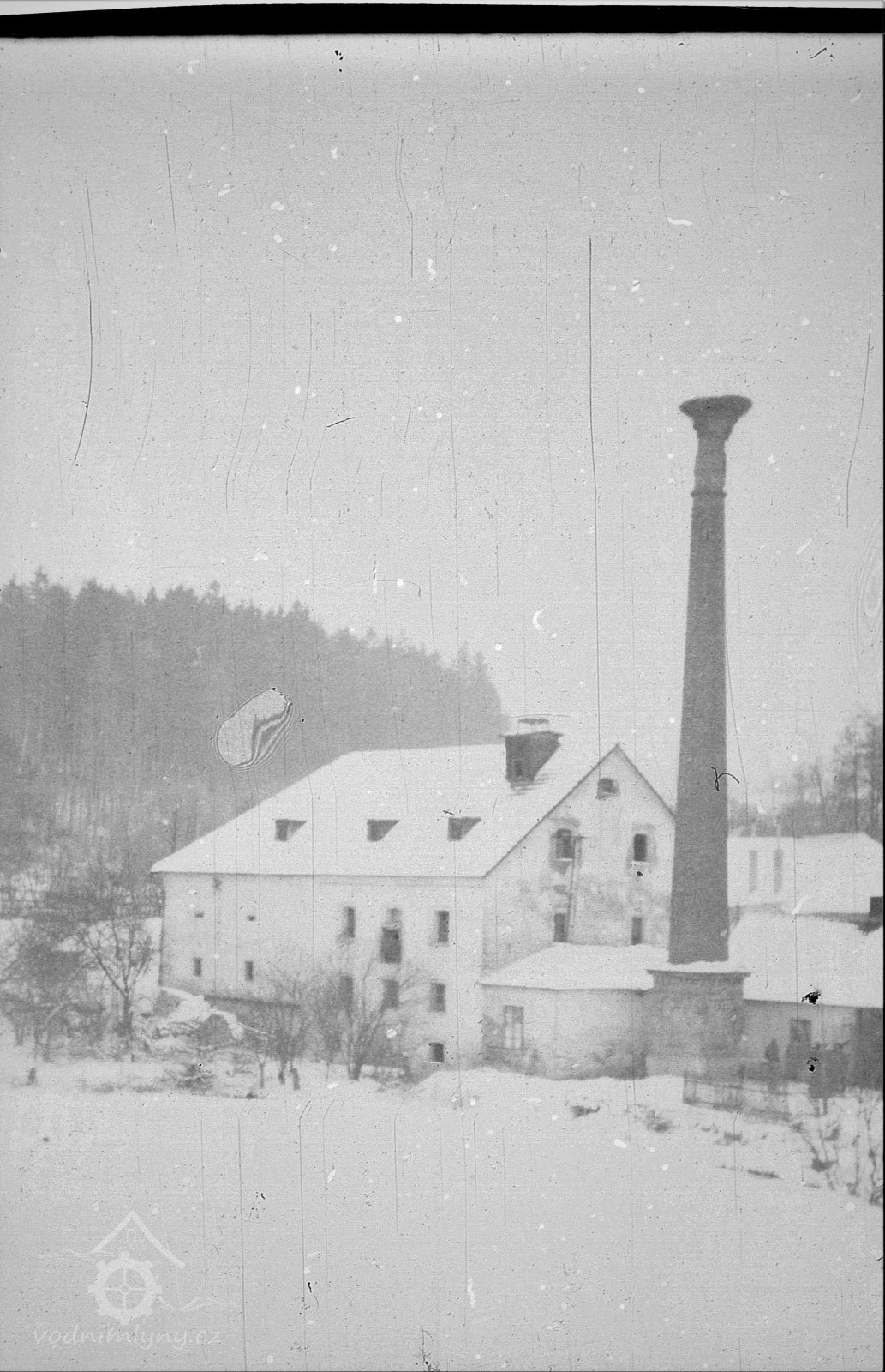 U mlýna stával komín určený pro parní pohon mlýna. Komín byl zbořen v roce 1981 dříve než samotný mlýn. Pří odstřelu komína došlo k poboření vedle stojícího stavení. V současné době na jeho místě nachází záhon s květinami.
