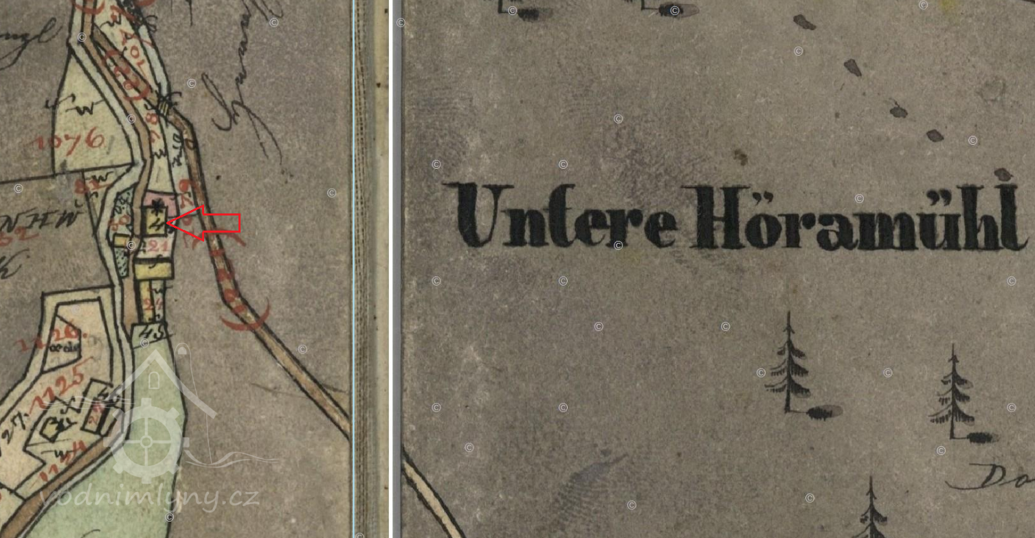 Mlýn je zakreslen na mapě I. vojenského mapování. V té době měl již čp. 21 a hospodařil zde mlynář Johann Georg Stieber s manželkou Josefou Wenzel.