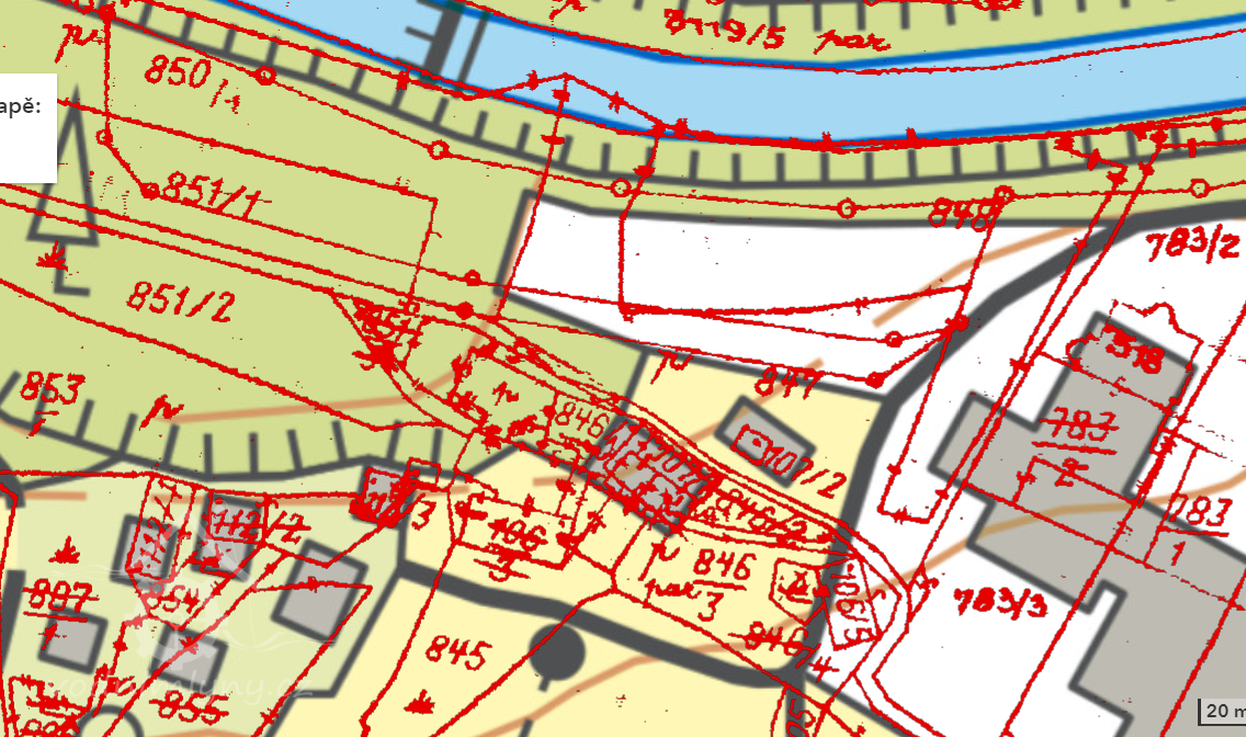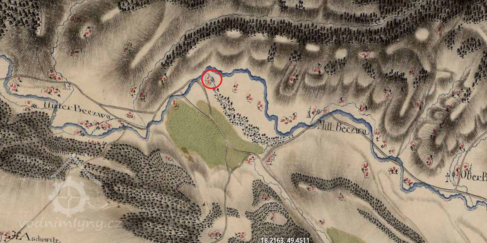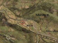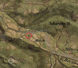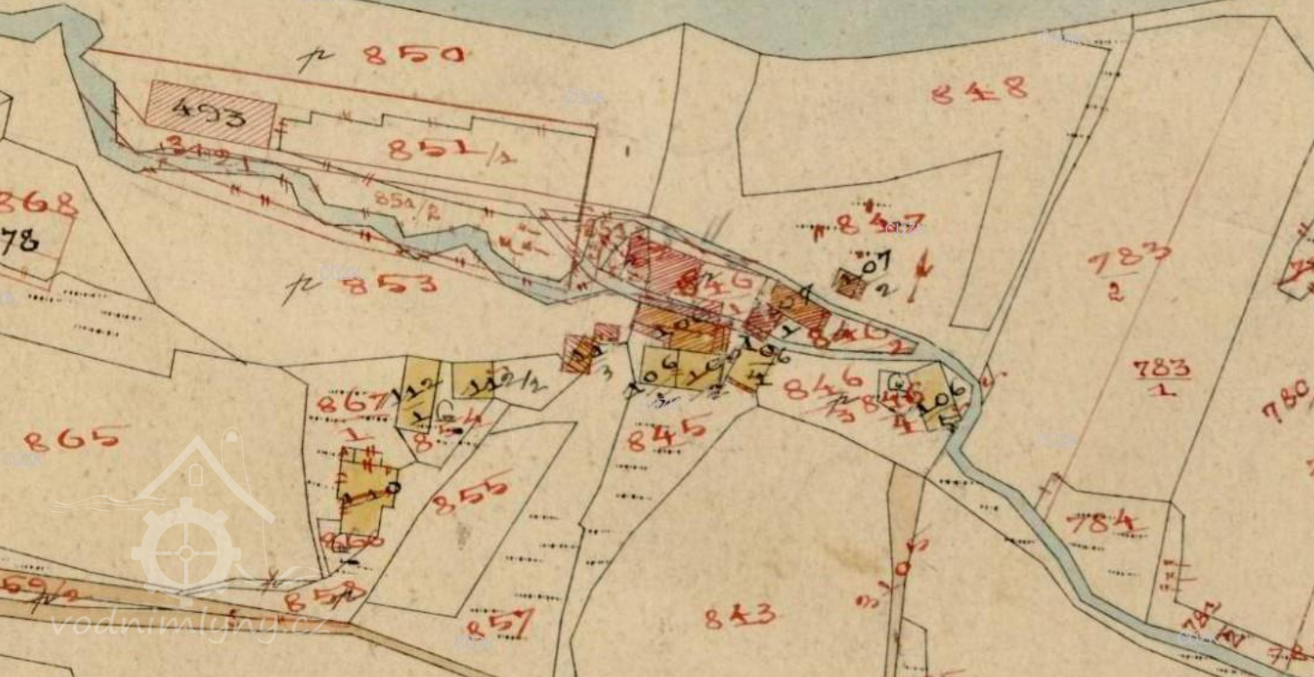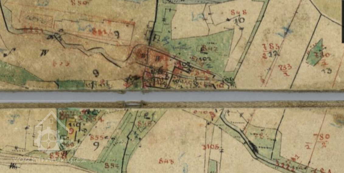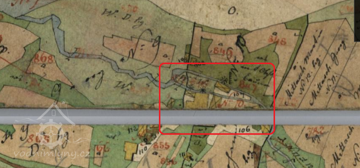 Mapová značka na místě mlýna v roce 1833. (RŠ)