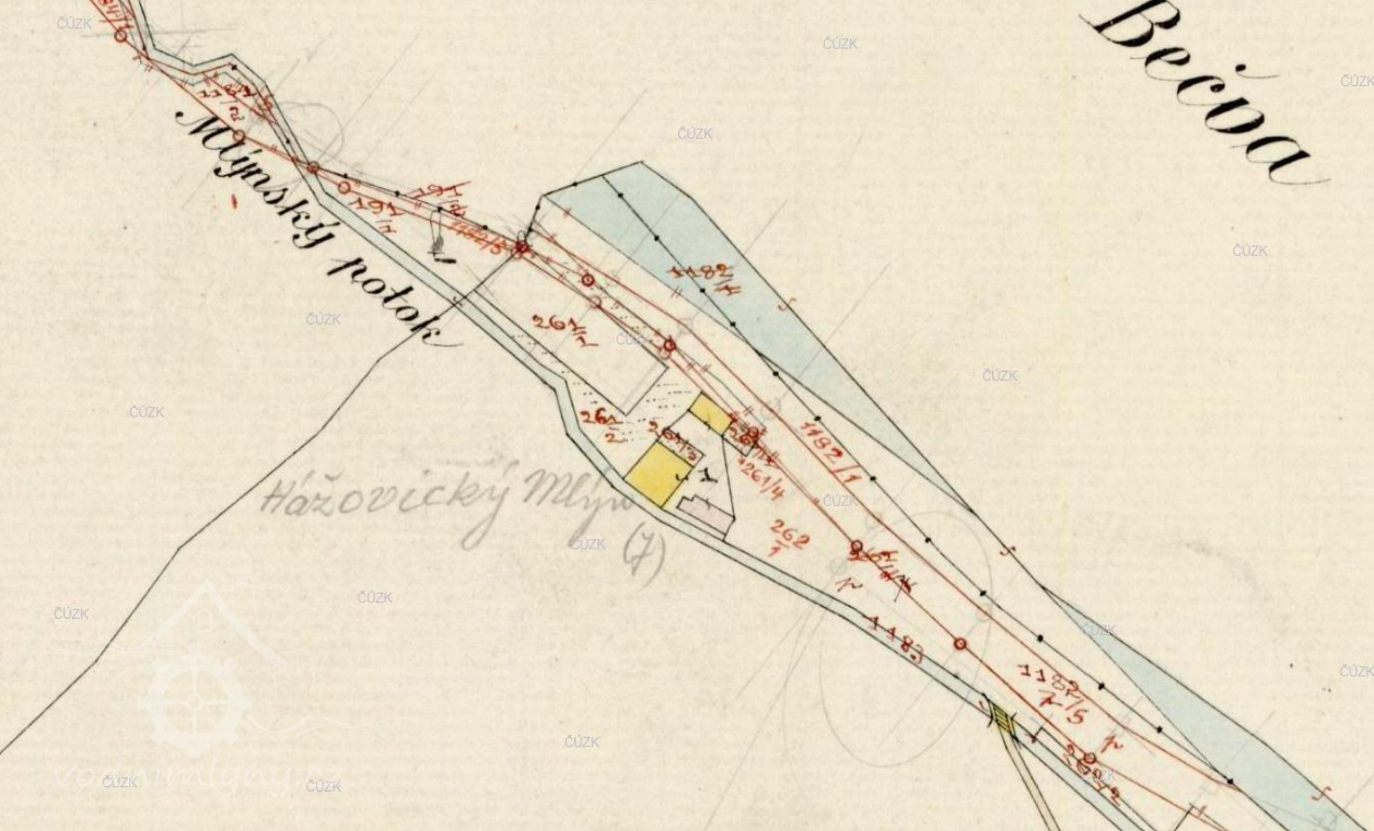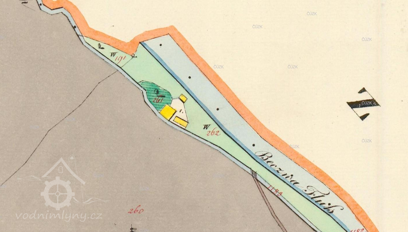 Popis1930: 1 kolo na svrchní vodu, hltnost 0,23 m3/s, spád 2,5 m, výkon 5 HP
