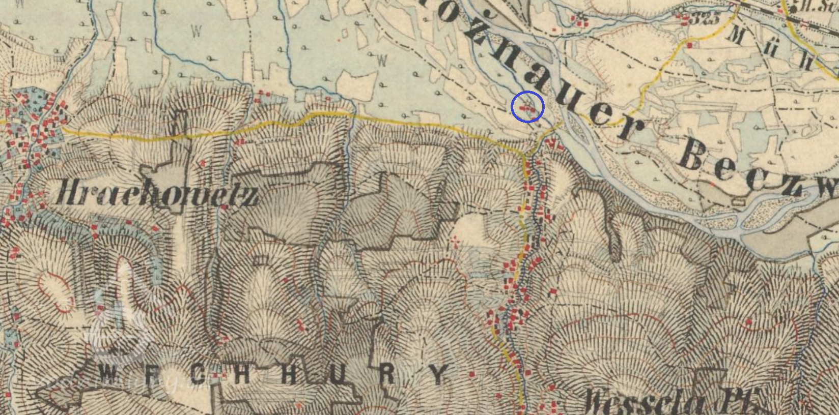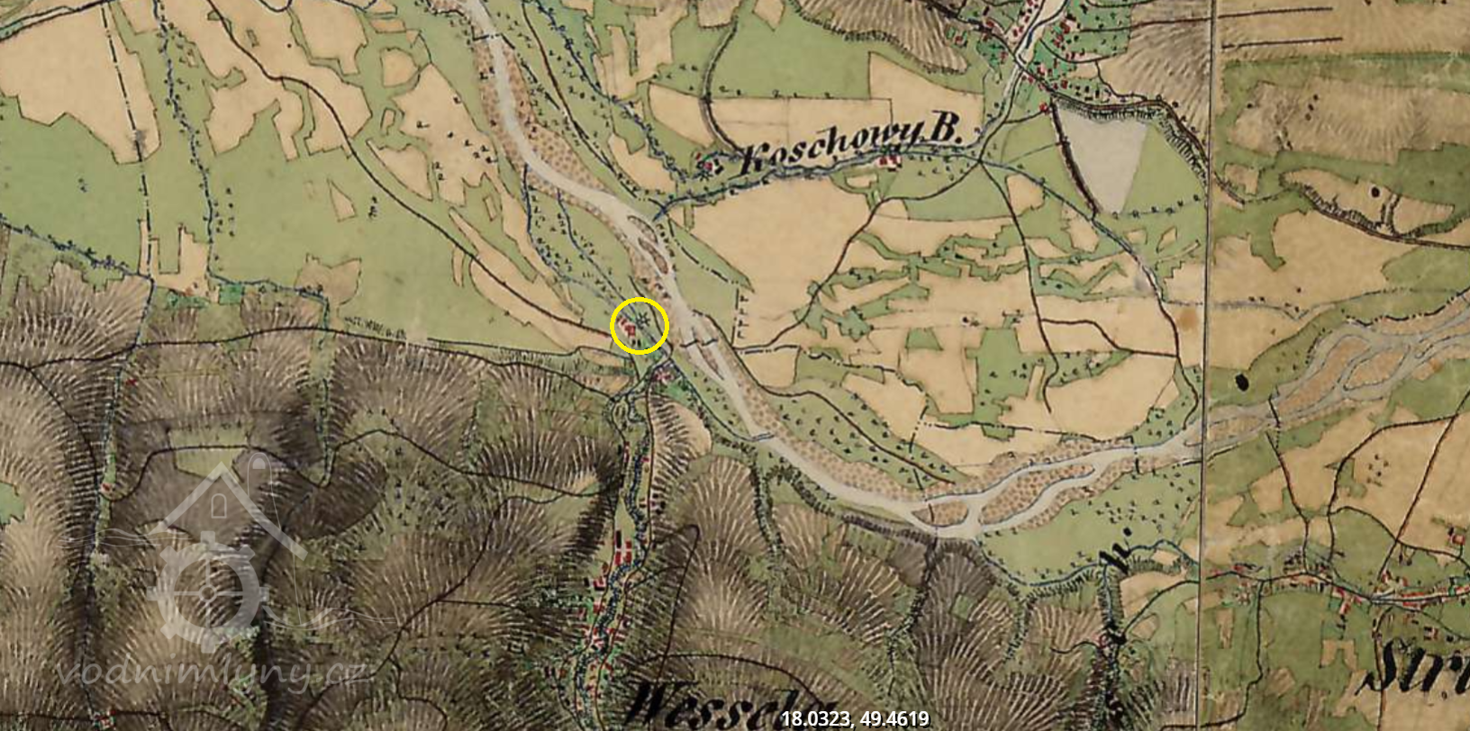 Mlýn se nacházel na okraji obce u Bečvy.